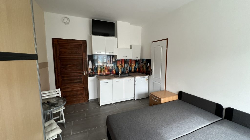 Elrendezés: 1 szoba (2+1 pótágyas) fekvőhely, privát fürdő, wc, és konyha rész. A pótágy 90x190cm teljes értékű lenyitható szekrényágy!